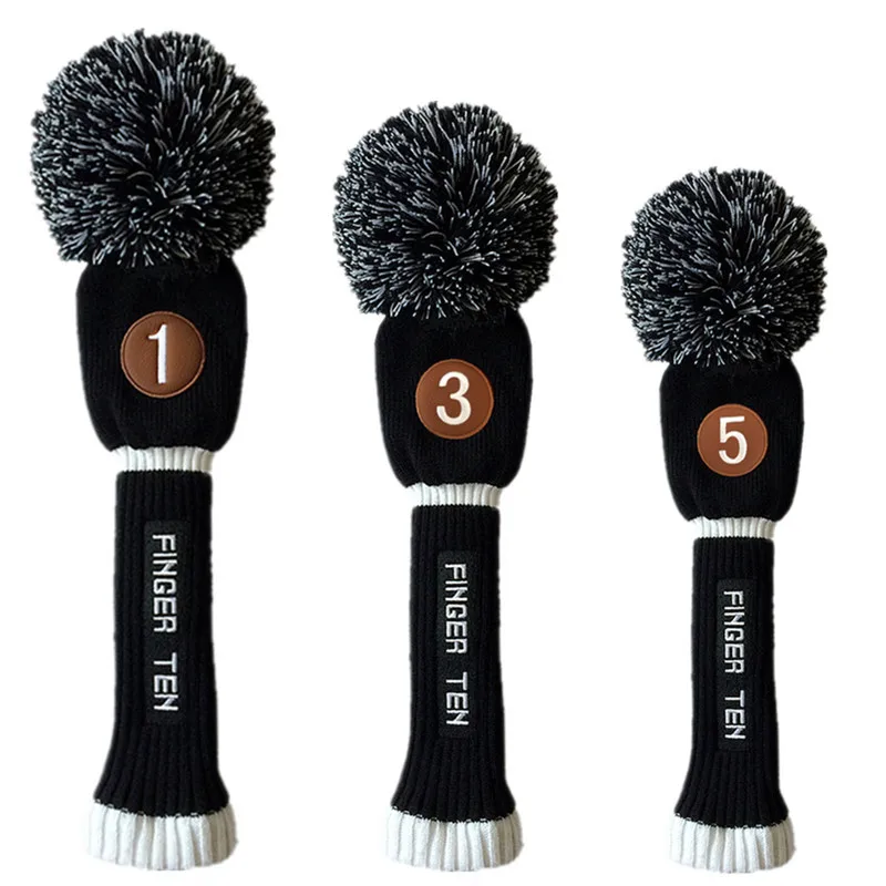 معرض من الغولف غطاء الرأس مجموعة سائق بوم بوم يغطي قيمة 3 حزمة #1 #3 #5 الممر السالك الهجين الخشب محبوك صوفي نادي الغولف Headcovers إصبع عشرة