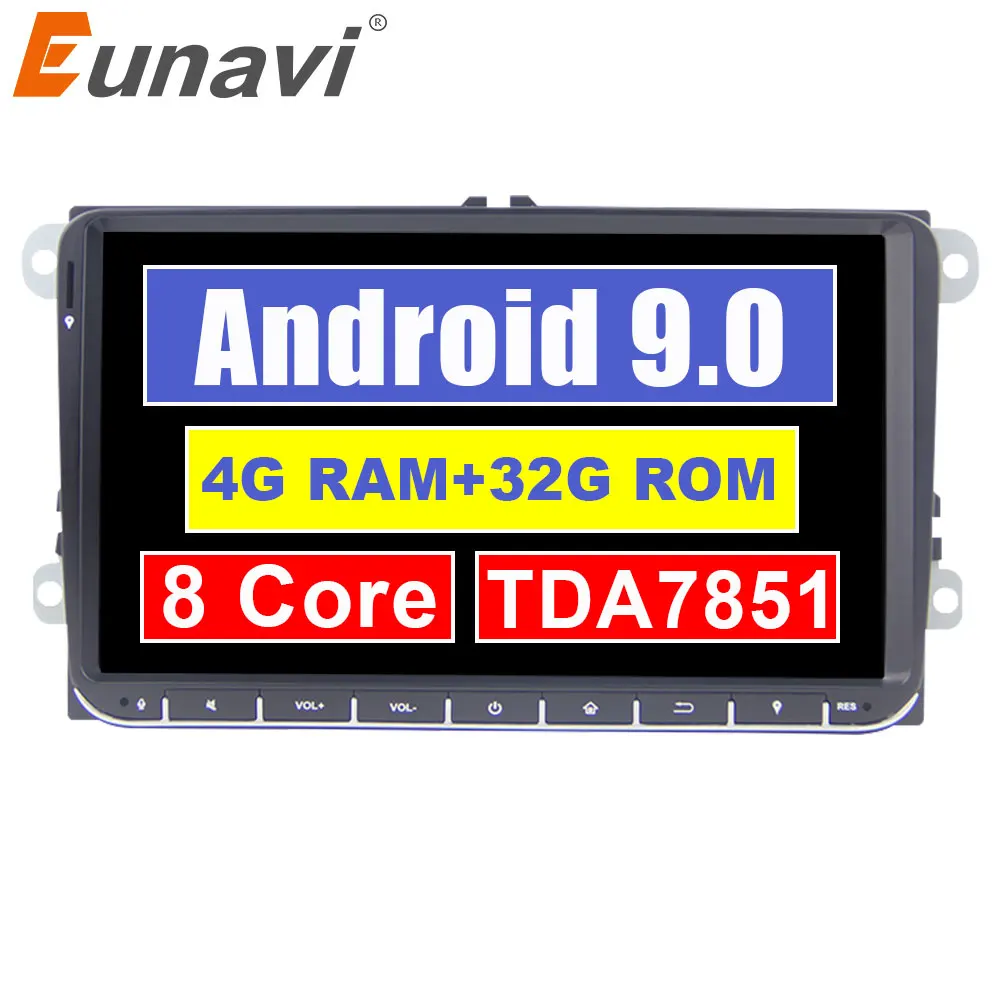 معلومات اضافية Eunavi 2 الدين الروبوت 9.0 سيارة راديو GPS لشركة فولكس فاجن باسات B6 CC بولو جولف 5 6 توران جيتا تيغوان magotan مقعد 9 ''شاشة مع زر