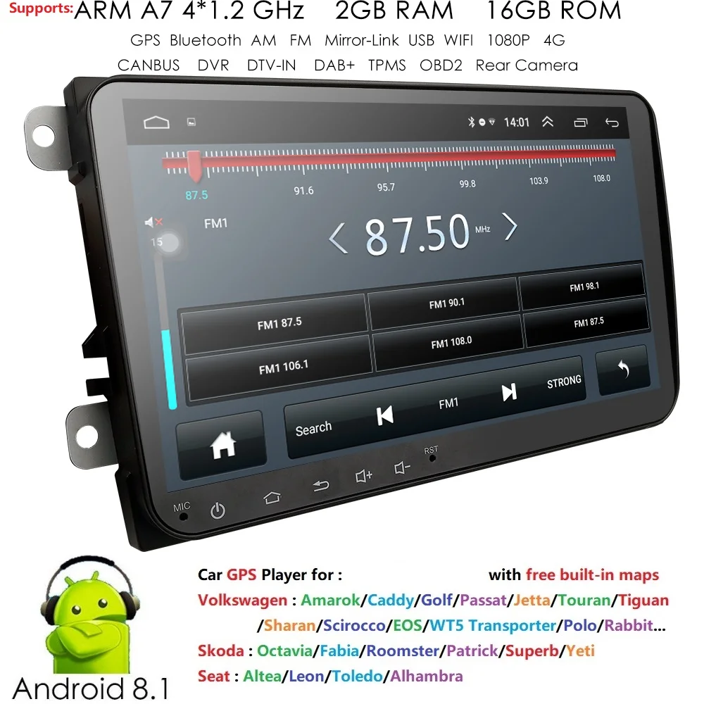 وانت porالبحث عن معلومات Golf, 2 الدين 9 ''الروبوت 8.1 2G RAM سيارة راديو ستيريو GPS نافي لشركة فولكس فاجن باسات B6 CC بولو جولف 5 6 توران جيتا تيغوان Magotan مقعد BT SWC شراء