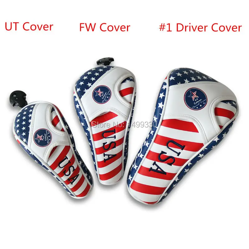 المنتجات ذات الصلة ل Golf و شحن مجاني حرفي usa العلم بو الجلود جولف headcovers رئيس يغطي سائق مهاجم ut فائدة مع عدد البطاقات
