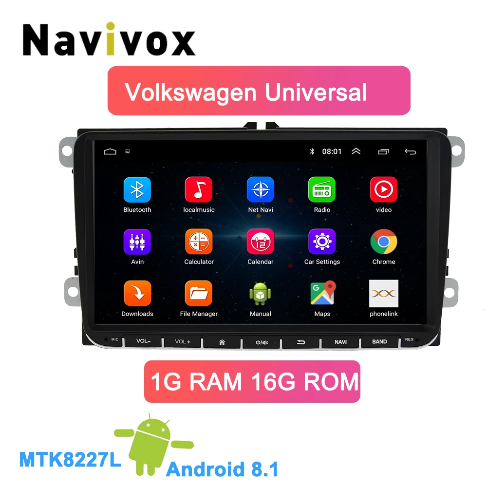 معلومات اضافية Navivox سيارة مشغل وسائط متعددة الروبوت 8.1 2 الدين مشغل أسطوانات للسيارة لشركة فولكس فاجن/فولكس واجن/جولف/بولو/تيغوان/باسات /b7/b6/مقعد/ليون/سكودا/ا...